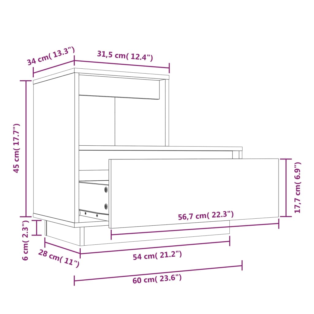 Cette table de chevet au design élégant est un supplément intemporel à votre décoration intérieure. Matériau de première qualité : le bois de pin massif est un matériau naturel magnifique. Le bois de pin a un grain droit et les nœuds donnent au matériau son aspect caractéristique et rustique.Grand espace de rangement : avec 1 tiroir et 1 compartiment, cette table de chevet offre un espace de rangement pratique pour garder vos magazines, livres, télécommandes et autres petits objets bien organisés et à portée de main.Dessus stable : le dessus stable peut être utilisé pour placer des objets décoratifs comme des cadres photo et des plantes en pot.Deux options d’assemblage : le côté haut de l’armoire peut être installé à gauche ou à droite en fonction de vos besoins. Attention :Afin d’éviter qu’il ne bascule, ce produit doit être utilisé avec le dispositif de fixation murale fourni.