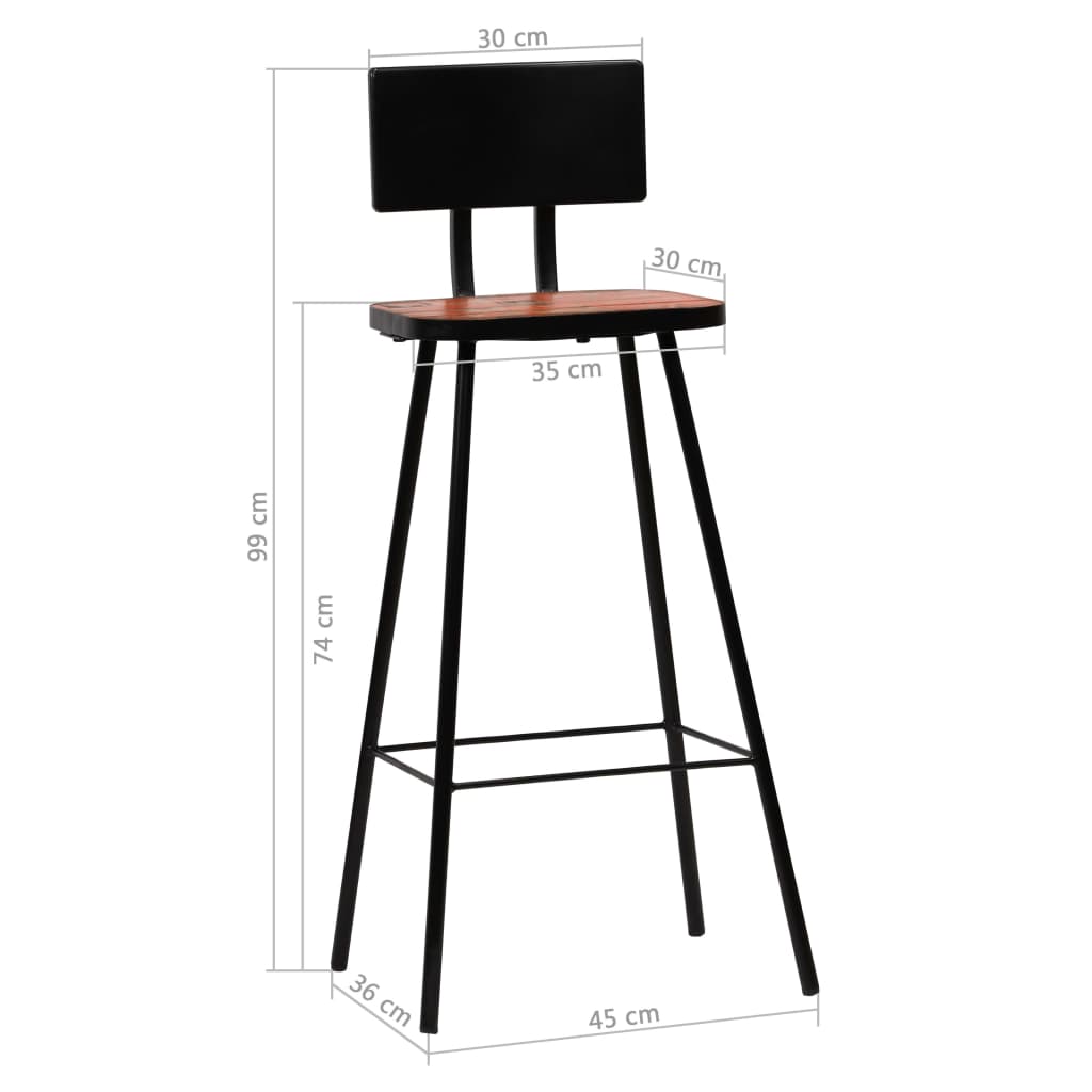 Ces chaises de bar de style antique en bois dégagent un charme industriel et seront un supplément intemporel à votre maison. Les chaises de bar sont faites de bois massif de récupération provenant de solives, de planchers et de poutres de soutien de vieux bâtiments démolis, et peut être composé de différents types de bois comme pin, teck, hêtre, chêne, cèdre, bois de manguier, acacia, etc. Cela signifie que le bois de récupération conserve les caractéristiques de ces différents types de bois. Le bois de récupération est déjà vieilli, patiné et séché, donc il ne rétrécit pas et ne se plie pas. Les belles veines de bois rendent chaque meuble unique et légèrement différent des autres. Les signes d’usure et la structure du grain visible confèrent également à chaque chaise bar son histoire et un look unique. Chaque étape du processus est réalisée avec le plus grand soin, que ce soit le polissage, la peinture ou le laquage. Les cadres en acier ajoutent à la robustesse et à la stabilité des chaises de comptoir et les repose-pieds vous permettent de vous asseoir confortablement sur les chaises. L’assemblage est facile. La livraison comprend 4 chaises de bar. Remarque importante : Les couleurs varient d’une pièce à l’autre, ce qui rend chacune de nos chaises de bar unique ; la livraison est aléatoire.