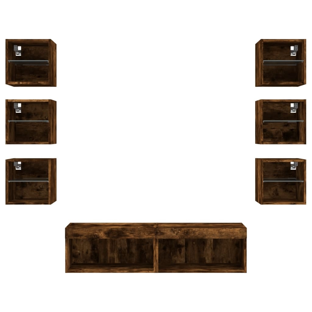 Ces unités murales TV sont la solution parfaite pour votre espace de vie afin de maximiser l’espace et de garder les surfaces au sol sans encombrement. Matériau robuste : le bois d’ingénierie est d’une qualité exceptionnelle avec une surface lisse et présente également résistance, stabilité et résistance à l’humidité.Lumières LED RVB : la unité TV est équipée de lumières LED RVB vibrantes. Avec divers menus personnalisables, vous pouvez changer sans effort la couleur des lumières et même les régler automatiquement. Ces lumières LED renforcent non seulement l’aspect contemporain du meuble TV flottant, mais aussi son attrait pour la mode.Design mural : le meuble de télévision peut être fixé au mur pour ajouter un espace de stockage supplémentaire. De cette façon, vous pouvez maximiser votre espace au sol et garder la zone propre.Grand espace de rangement : le meuble TV flottant est doté de différentes options de rangement, offrant ainsi un grand espace pour ranger vos objets quotidiens tels que les livres, les DVD, les accessoires multimédias et d’autres articles bien organisés et à portée de main.Design polyvalent : vous pouvez l’utiliser comme meuble TV ou le monter sur le mur du lieu de travail pour un rangement pratique des outils ou d’autres articles divers. En outre, il transforme un mur vide en élément de design. Bon à savoir :Les vis et les chevilles pour l’intérieur du mur ne sont pas incluses. Nous vous conseillons de trouver et d’utiliser des vis et des chevilles adaptées spécifiquement à vos murs. Si vous n’êtes pas sûr, vous pouvez consulter un professionnel. Veuillez lire et suivre chaque étape des instructions.Ce produit est doté d’un connecteur USB qui nécessite une source d’alimentation USB de 5V certifiée (non incluse).